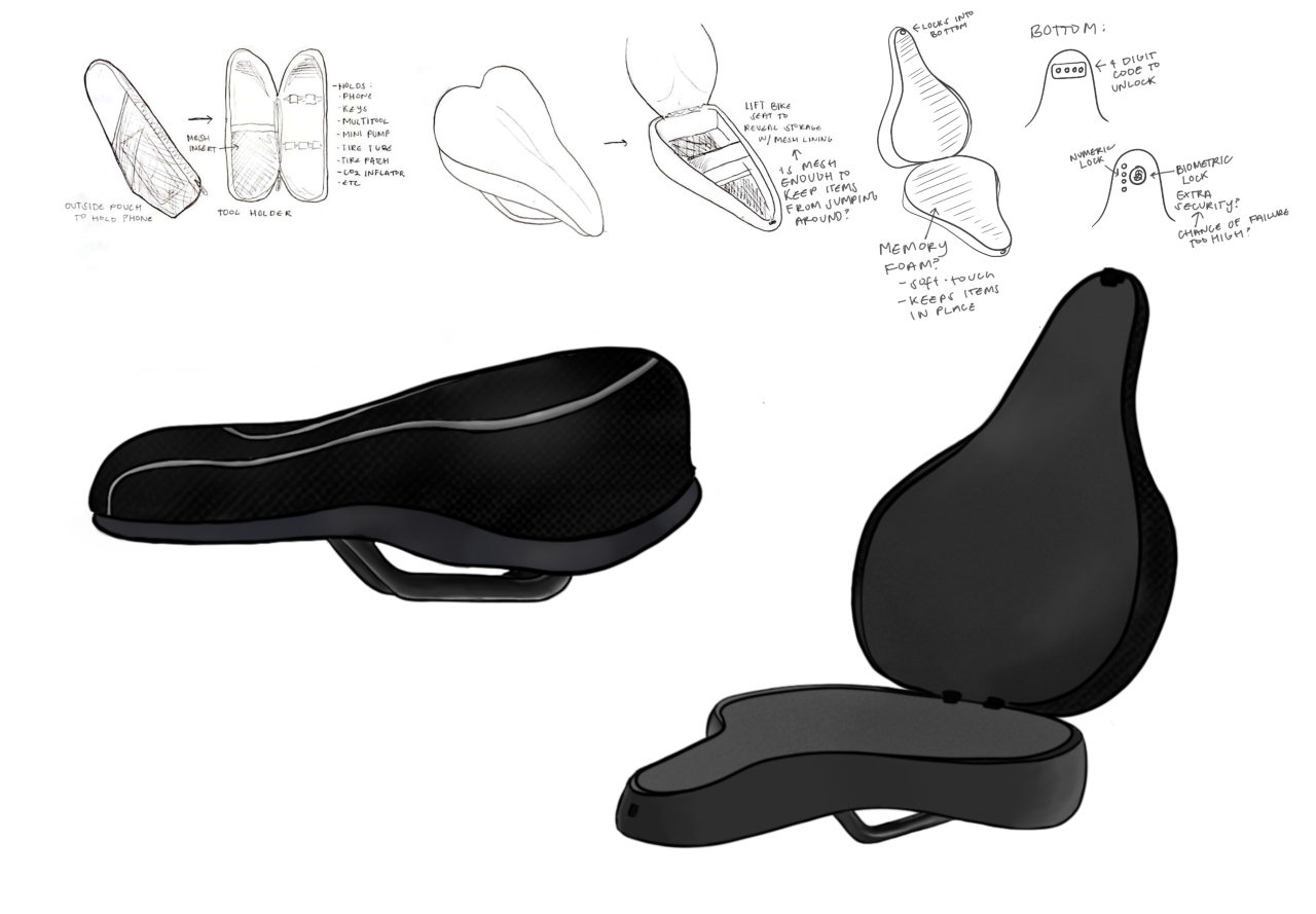 The SeatPod was created to address a problem surrounding storage that many bicyclists experience during their commute to work or school. Through extensive observational research and survey interviews, a solution was created! The SeatPod is a 2-in-1 bike seat that features a unique, practical internal storage compartment.