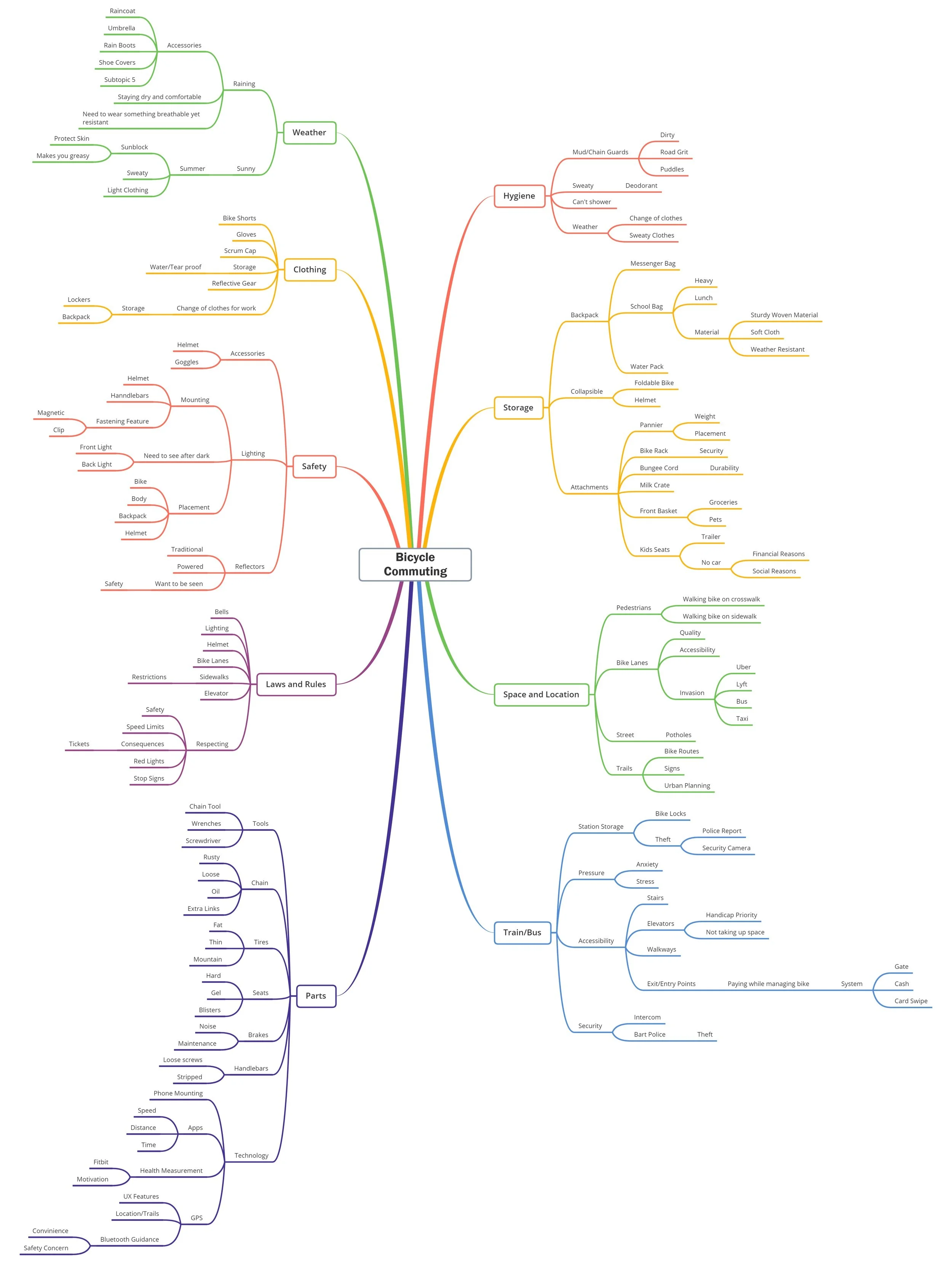 The mapping began with nine topics related to bicycle commuting: